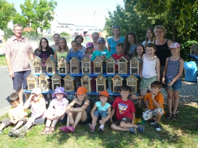 ...bauten die Gartenfreunde Reckendorf zusammen mit 15 Kindern im Ferienprogramm. Jedes Kind konnte sein Insektenhotel mit nach Hause nehmen und so die Wildinsekten im heimischen Garten fördern.
