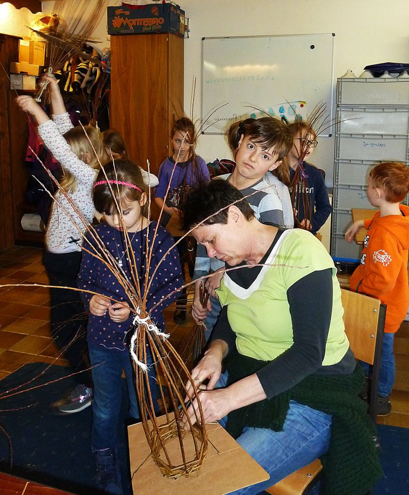 Am 19. März 2016 wurden die "Gartenzwerge" kreativ: Mit dem Naturmaterial Weide zu flechten ist zwar nicht einfach, macht aber Spaß! Mit Eifer waren die kleinen Kunsthandwerker dabei, so dass am Ende jeder ein tolles Vogelhäuschen oder eine Blumenampel mit nach Hause nehmen konnte. Wir bedanken uns noch einmal bei Frau Hilbich für die Kursleitung.