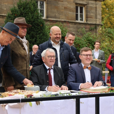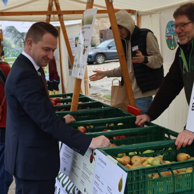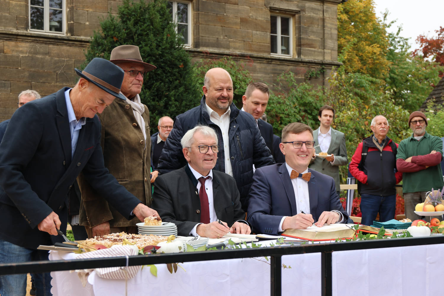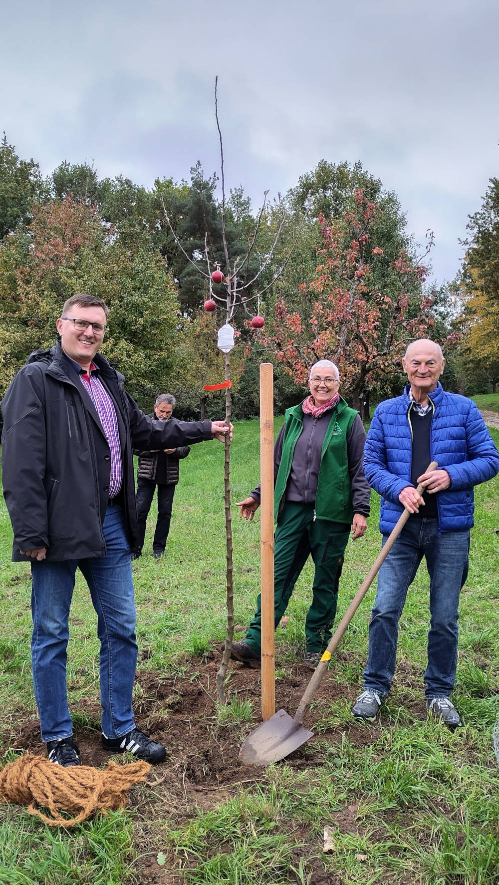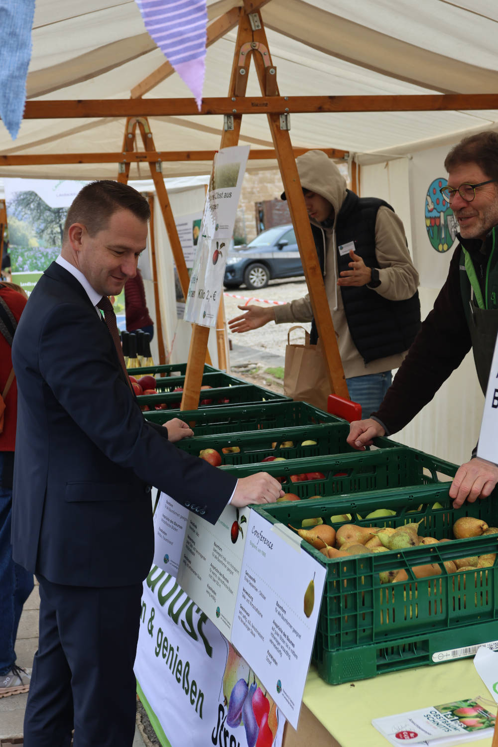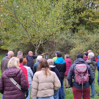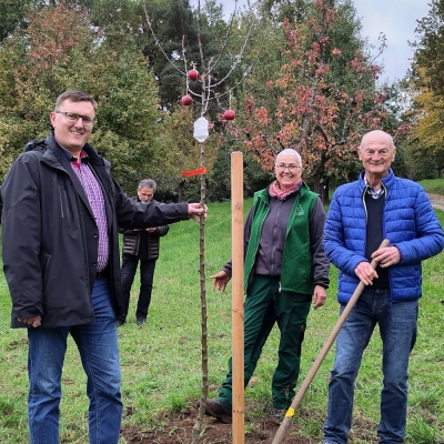 Bereits zwei Tage zuvor wurde mit dem Obstwiesenfest auf der Obstsortenanlage des Kreisverbands in Lauf bei Zapfendorf ein weiteres Zeichen für die Bedeutung der Streuobstwiesen auch für junge Generationen gesetzt. Neben zahlreichen Infos zur Streuobstkultur für die ganze Familie konnten große und kleine Streuobst-Fans den artenreichen Lebensraum Streuobstwiese über mehrere Stationen spielerisch entdecken, Baumgesichter basteln, Apfelsaft pressen und bei einer Führung mehr über alte Obstsorten erfahren. Den krönenden Abschluss bildete die Pflanzung eines seltenen Apfelbaums – ein sichtbares Symbol für die Fortführung der Tradition und den Erhalt der Kulturlandschaft.